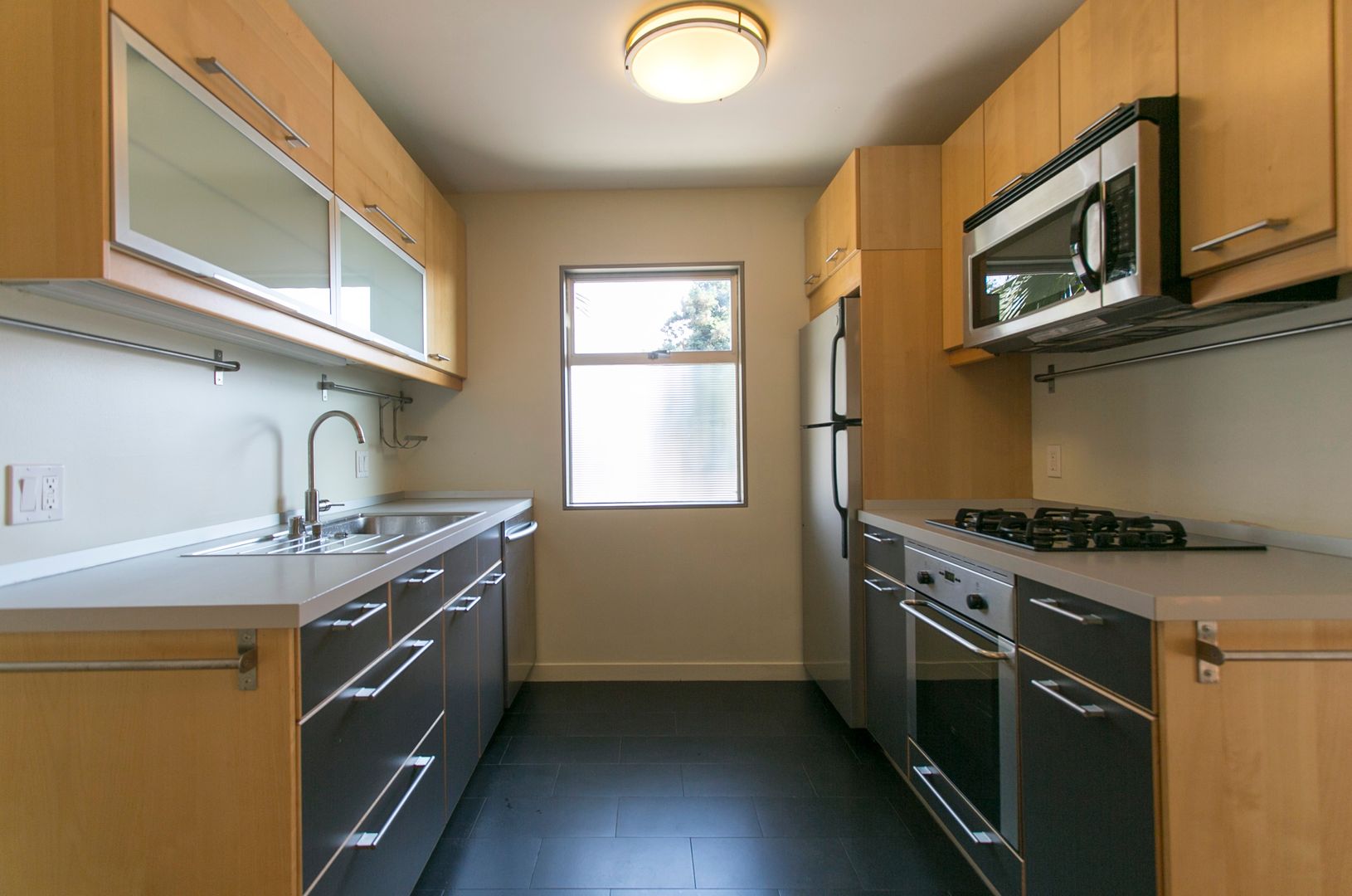 This beautifully remodeled one bedroom has hardwood floors throughout the apartment. New kitchen and appliances, hardwood floors, Italian bathroom tiles, and built-in storage. It's only a five block walk to BART, one block to a great coffee house, theater, and a short walk to the El Cerrito Plaza shops & Trader Joes. The kitchen includes stainless steel appliances, dishwasher, disposal, built-in convection oven, gas cooktop, and large microwave oven/range hood, and beautiful cabinets.