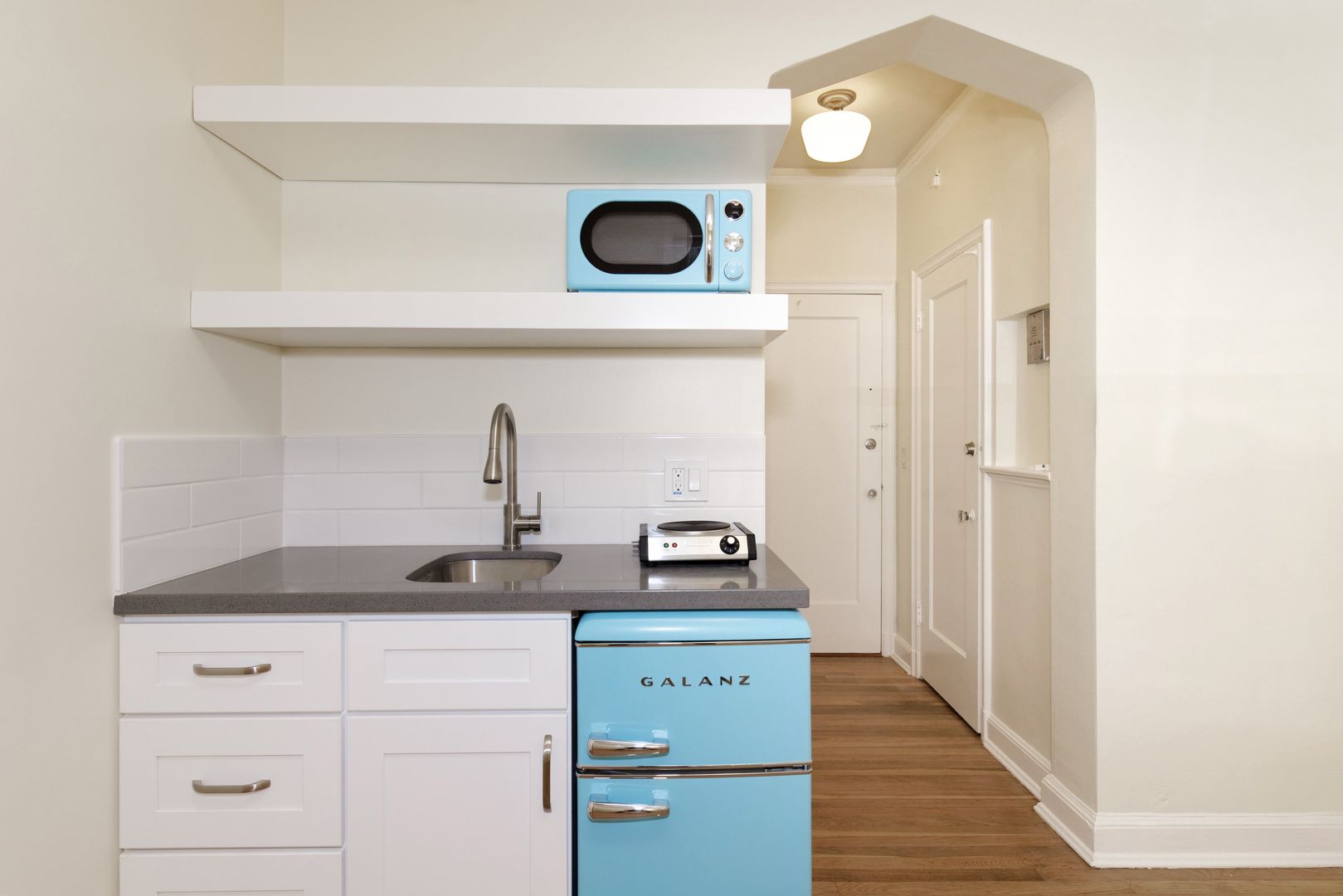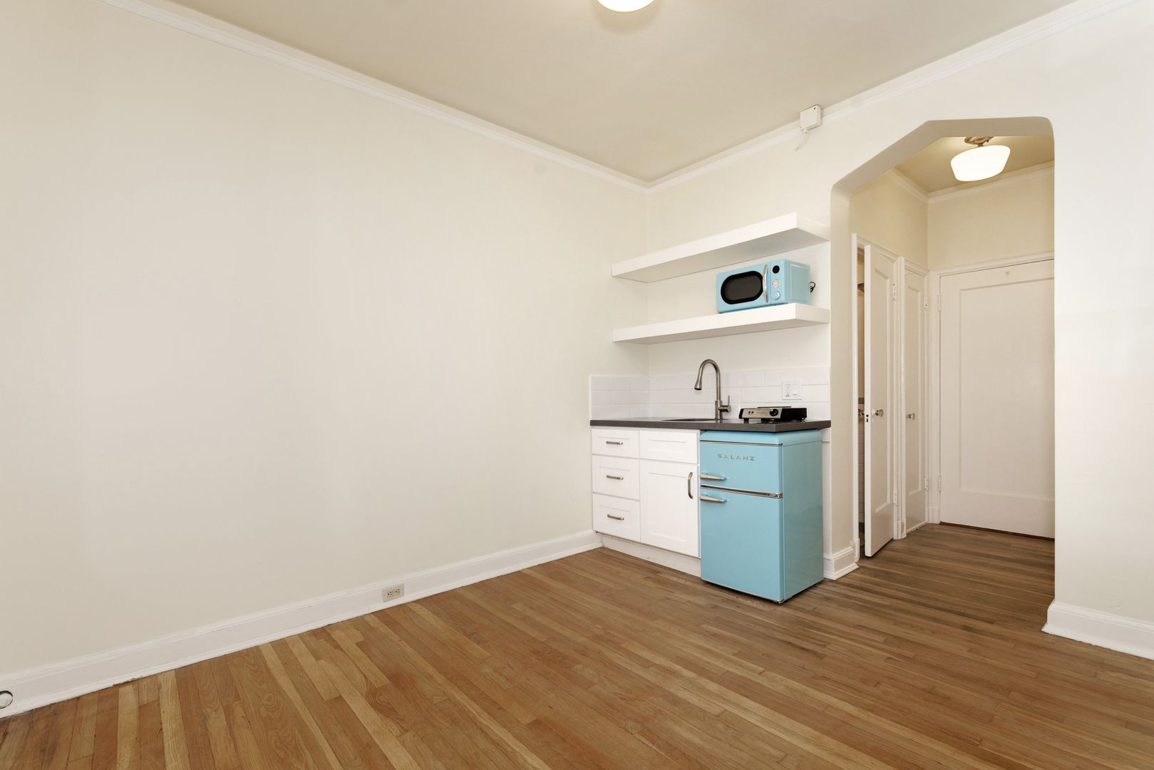Living Space: Refinished Original Hardwood Floors, Kitchenette – Includes hot plate, mini fridge µowave