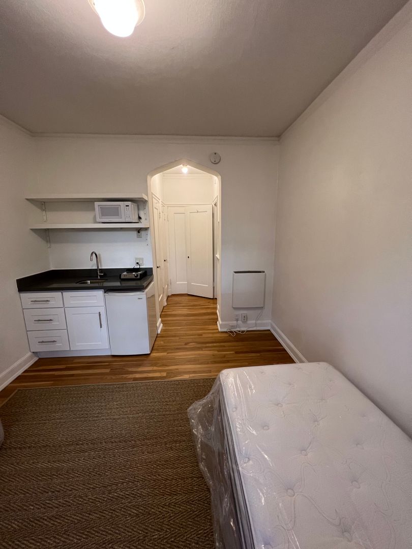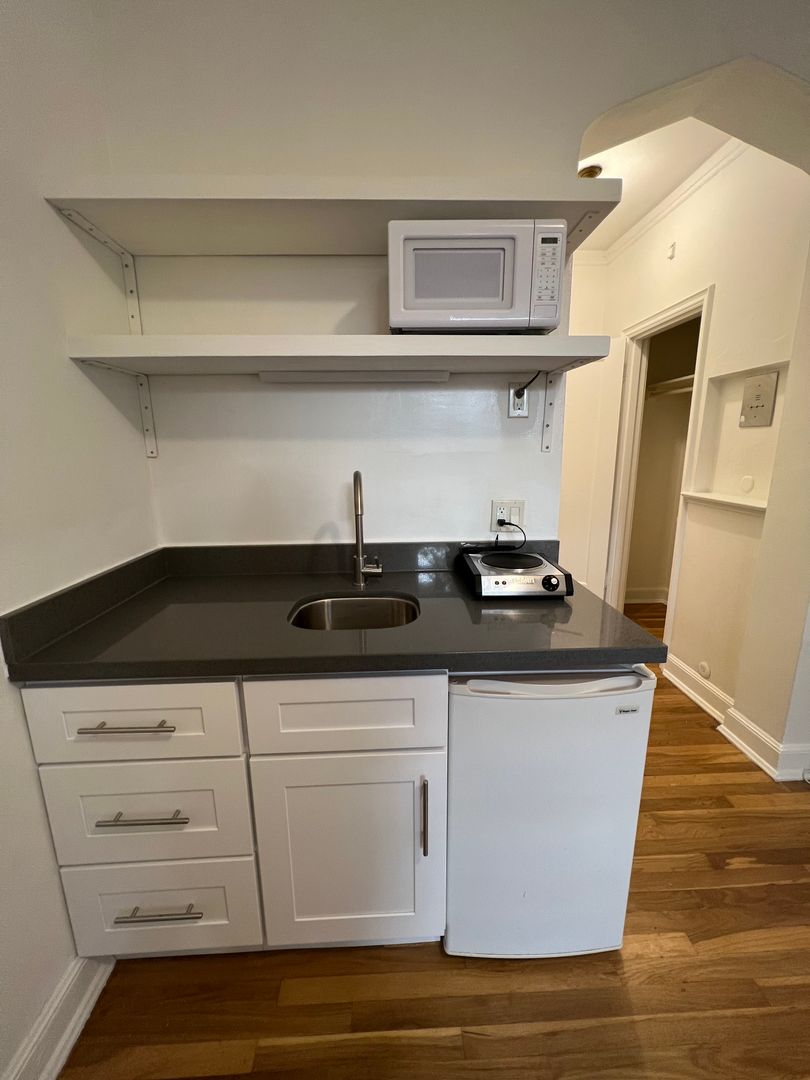 Living Space: Refinished Original Hardwood Floors, Kitchenette – Includes hot plate, mini fridge µowave